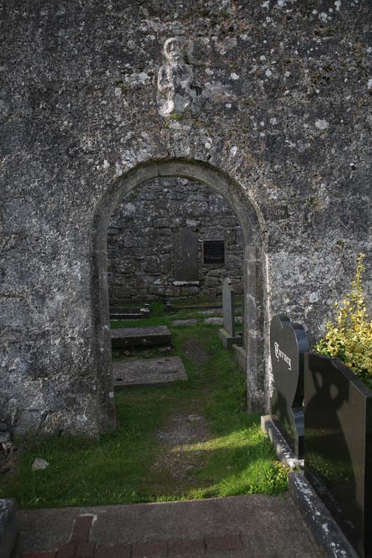 Kilnaboy Church. Sheela na gig located over arched entrance